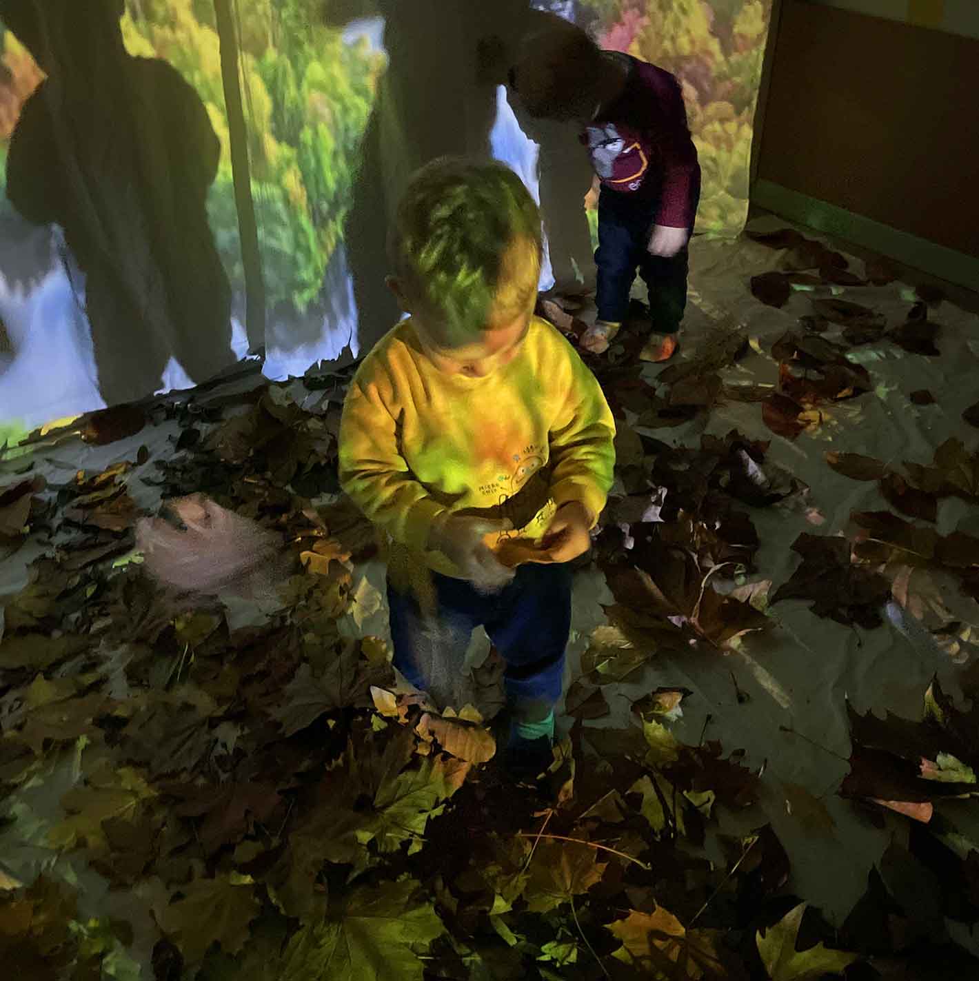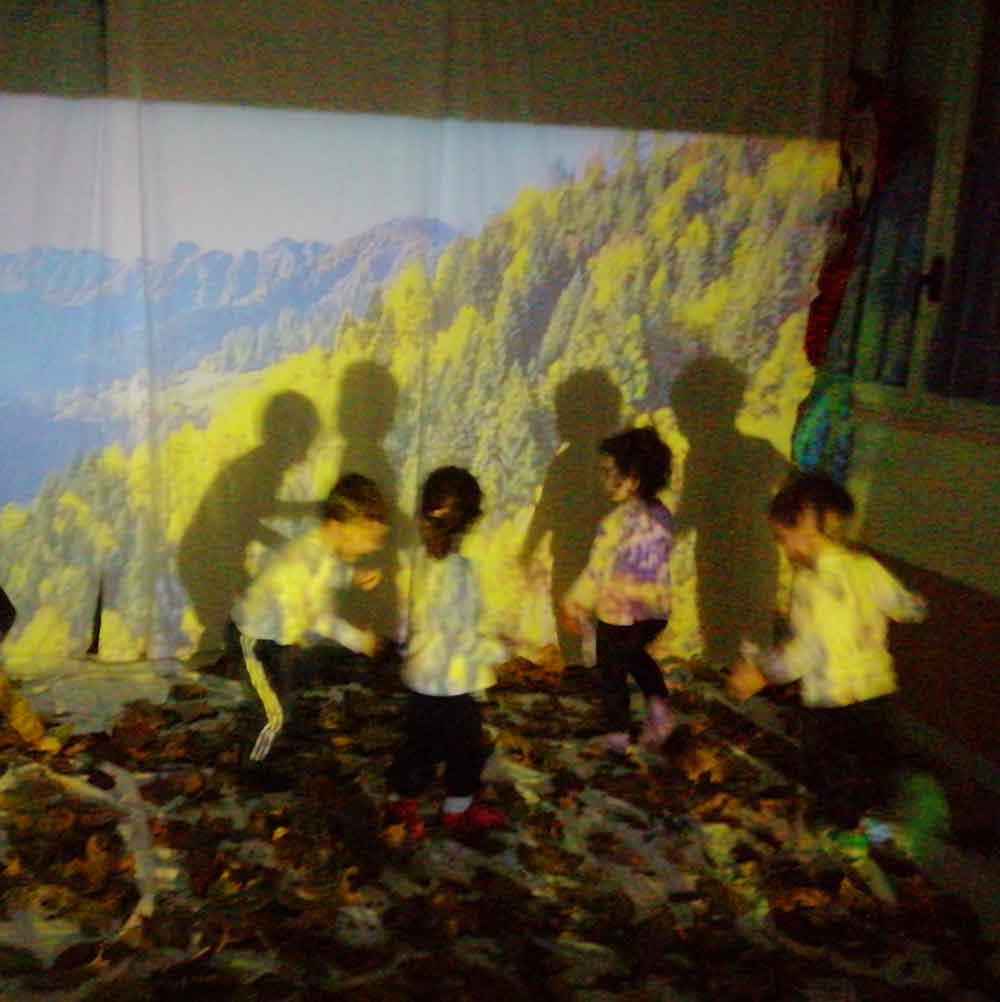 Tra luci soffuse, musica dolce e un tappeto di foglie vere, i bambini si immergono nella magia dell’autunno. Colori, ombre e materiali naturali trasformano la stanza in un piccolo bosco da esplorare, stimolando meraviglia, curiosità e senso di stupore a ogni passo.