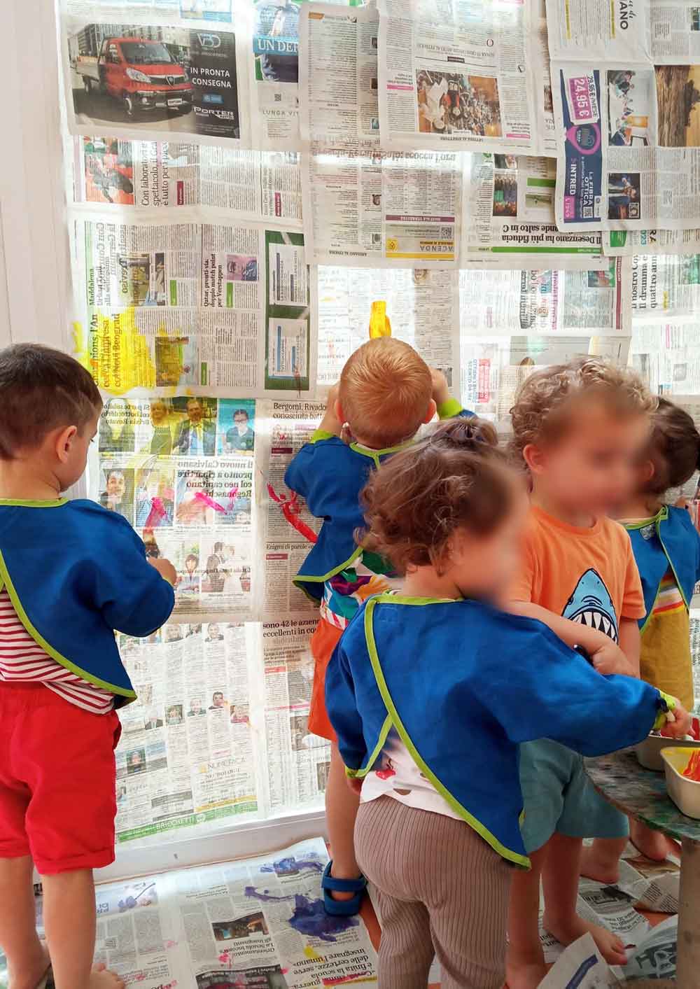 Con semplici fogli di giornale, i bambini trasformano la carta in un piccolo tesoro creativo: la dipingono, la strappano, la sfogliano e la manipolano. Ogni pezzo diventa un gioco sensoriale tra colori, consistenze e suoni, dove la fantasia prende il volo.